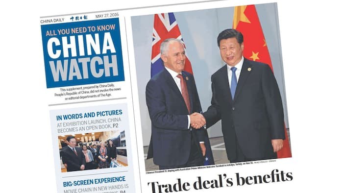 批评者们指出北京的宣传机器轮廓更加鲜明,而在中国国内,记者被监禁,许多外国媒体的网站被封。一些人警告说,附带刊发北京的宣传可能会损害自己的报纸,并且让北京的商业影响力影响到澳大利亚记者关于中国的报道。
