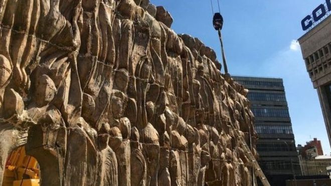 站在这座渐渐成型的雕塑旁,他对我解释说:”那是一个巨大的灾难,是对人类犯下的最严重的暴行之一。我不可能不受到震动。”