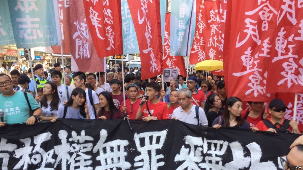 数以万计的香港人星期天下午冒着35度的高温和高湿走上街头,参加社民连等多个政党和团体发起的从湾仔至中环终审法院的大游行,声援过去一周被上诉庭改判加刑监禁的闯公民广场案双学三子及闯立法会案的13名抗争者,抗议政府政治检控,撕裂社会。游行组织者表示,这是2014年占领运动后,人数最多的一次游行。