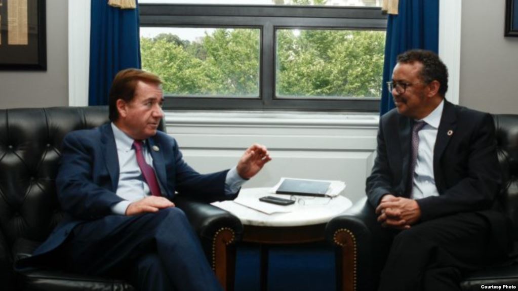 外委会还发布罗伊斯主席2天前与世卫新上任的总干事阿达诺姆(Tedros Adhanom)博士会面的照片。埃塞俄比亚籍的阿达诺姆在今年5月的世界卫生大会改选中当选新的总干事。