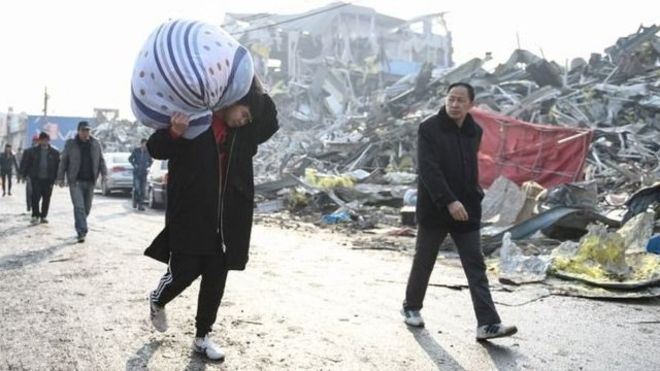 “事情发生得如此之快,很难想象这曾经是我的家,”来自河南的20多岁的农民工王国伟(音)说,他正拉着一个箱子走在到处都是垃圾和瓦砾的大街上。他说,他的生产汽车零部件的雇主已经帮他在北京找到了一个新住处。