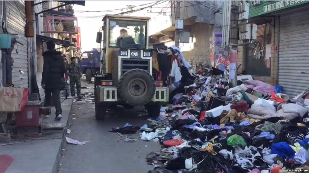 “一夜之间,我的谋生手段突然被毁掉,就好像遇上强盗似的,只不过这是政府干的,还说这是因为他们关心我们,”来自中国中部河南省的38岁妇女张贵欣(音)说,她的水果和蔬菜摊已被拆除。