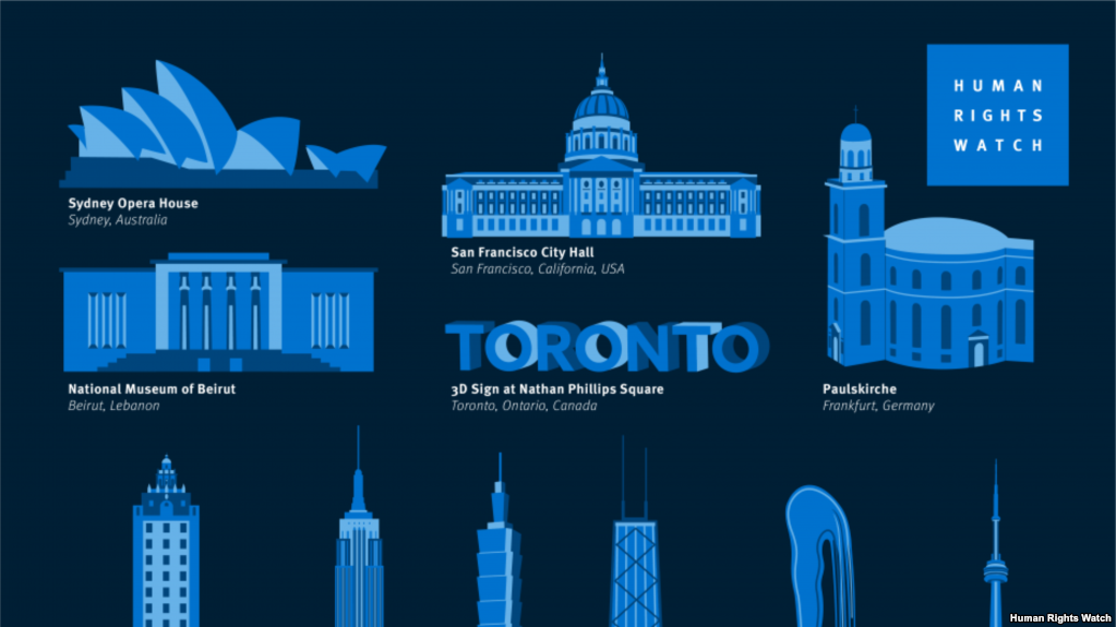 12月10日,全球24座地标点亮蓝光来庆祝世界人权日 (图片来源: 人权观察网站)