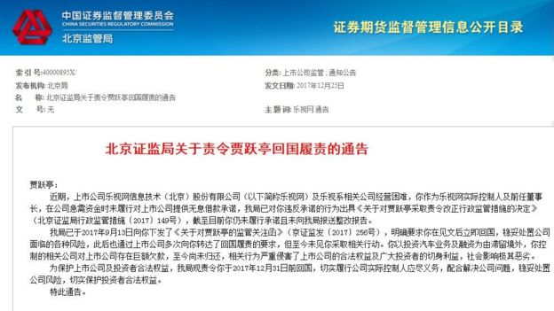 该律师告诉BBC中文,法律上证监局没有义务下发这种通知。只是乐视事件影响太大,所以这个通知可以看作是监管部门不得不做的一种表态。