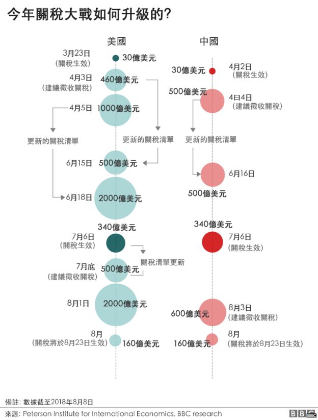 几天后,白宫警告,关税可能会扩大至价值2000亿的中国产品。然后在三周前,特朗普威胁说要对中国每年出口至美国的全部5000亿美元产品征收关税。