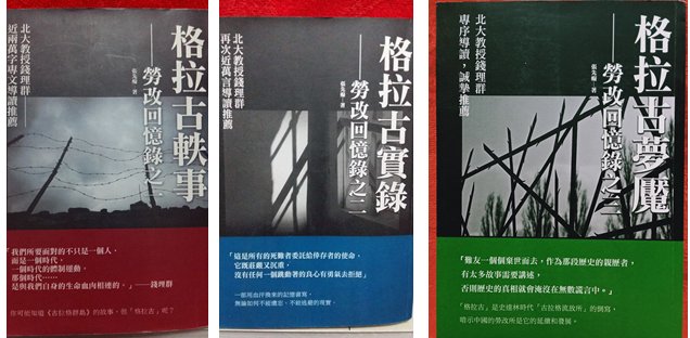 张先痴是我十分敬佩的人物。我敬佩他在经济拮据和失明中,以坚韧的意志写出煌煌巨著《格拉古轶事》《古拉格实录》和《格拉古梦魇》三部曲(上图为张先痴著“格拉古”劳改回忆录三部曲),白描似的据实描写反右运动和右派分子们在劳改营中的惨景,为历史留下了一代人永恒的见证。我曾帮助张先痴做过校对,因此对三部曲有着深刻的印象,被他悲苦的人生和不屈不挠的精神深深感动。