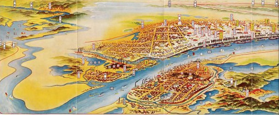 图3:1930年日本人绘制的武汉三镇地图。图片来源:wikipedia