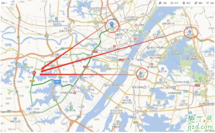 图4:知音湖与长江河道以及武汉中心的关系,来源:网路图片,这里借用