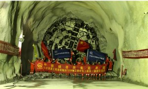 图4:引汉济渭的隧道工程 从德国引进的隧道掘进机正在工作,图片来源:网络截屏