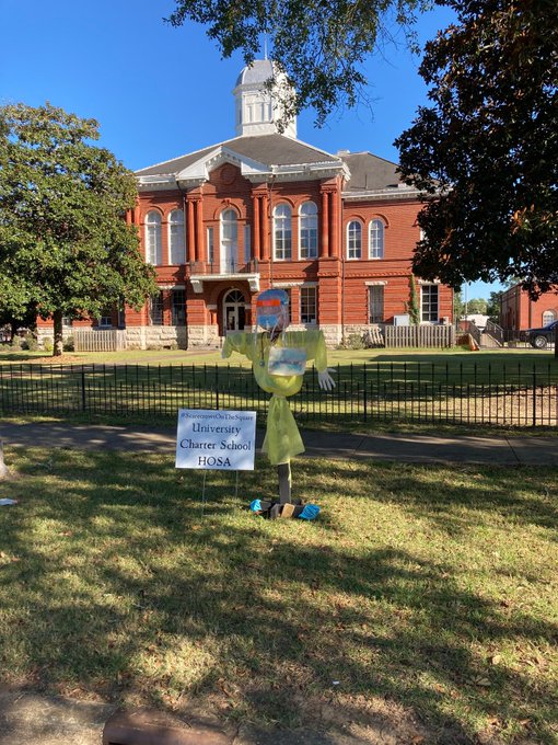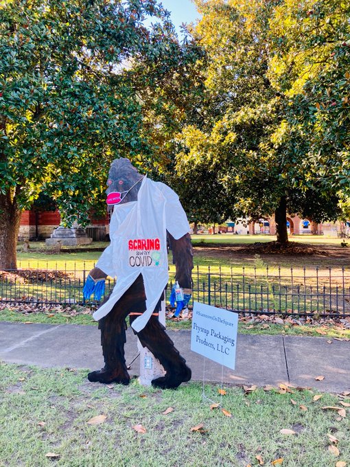 万圣夜的主题是鬼怪、吓人,以及与死亡、魔法、怪物有关的事物,也与庆祝丰收的南瓜相关。今年还联系上新冠疫情,所以,法庭大厦四周的灵异人物比往年多。而且,联系到小镇南北战争的亡灵,也凸显了小镇居民的爱好和平的愿望。以及,美国人的风趣和幽默。