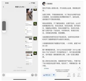左图:一位微信网民抱怨自己在群里转发水灾视频,被群主移出。 右图:网传郑州地铁员工曝当局早已接到水灾预警,只是“各怀鬼胎”而已。(乔龙提供)