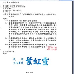 1999年違背《憲法》訂立《國軍軍事勤務致人民傷亡損害補償條例》,以1949年底政府退守臺灣為分界,切割中華民國,2021年慶祝中華民國110歲生日,究竟有何意義?中華民國在哪裡?