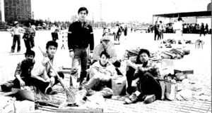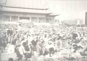1990年3月20日,野百合學運期間東吳大學靜坐隊伍,張英庭攝影