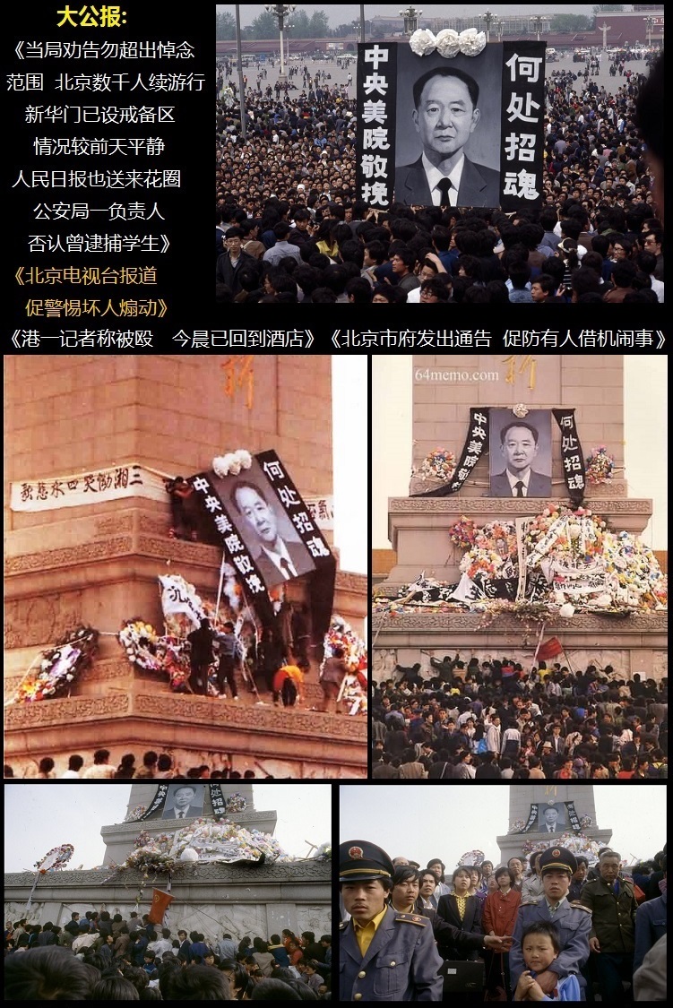 在这个事件中,广场的大幅区域被占据,其中包括人民英雄纪念碑和毛主席纪念堂,广场南北的终端是前门和故宫,东西两侧是中国革命博物馆和人民大会堂。这是对政府合法性的勇敢挑战,也在宣称政府的理想在现实中的失败。此外,中南海前门外的大片区域也被占据,这个宅院是中国政府最高党政领导人的居所。可以说,这一大无畏的行为,远远地超过了越战时期美国反战分子在白宫门廊上露营几周的行动。