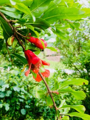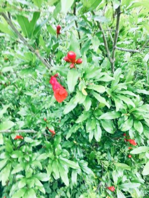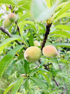 春桃已挂满枝头,石榴已开花,柿刚结子,桑椹开始发紫,梨比我家的梨大些。