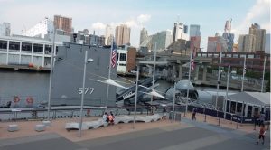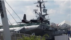 停靠在纽约港码头已退役供游人参观的“无畏号”航母