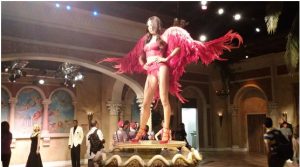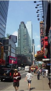 下一个参观内容是位于时代广场的“杜莎夫人蜡像馆”,我们在时代广场附近下车,和导游一起来到时代广场,此时的时代广场远没有夜晚时那么灯火辉煌、热闹,人也少了许多。走不多久,便看到“杜莎夫人蜡像館”的招牌,我们进门后才发现蜡像馆的展厅都在楼上,我们排队登楼参观,由于蜡像馆的名声太大,以致参观的人非常多。登楼后看到的第一尊蜡像是一位扮演天使的女士,她足踏红色高跟鞋,身着比基尼装,双手扠腰,秀发飘柔,肩披一双用红色羽毛制作的翅膀站立在一个园形的展台上,含情脉脉地注视着从她面前经过的每一位观众。进入不同的展厅可以看到各种人物的蜡像,都如真人大小,其制作之精细、仿真度之高,无不令人惊叹,如果不是事先知道是制作的蜡像,我估计任何人都会把它们当成真人。蜡像中除了各式各样的普通人物之外还有许多世界级的名人诸如:华盛顿、林肯、里根、特朗普、达顿喇嘛、爱因斯坦、特蕾莎修女、玛丽莲.梦露、斯皮尔伯格……等。观众们根据各人的兴趣和喜爱,都竞相与各自心仪的蜡像人物合影留念。我也与前面列举的名人一一合影留念。此外还有一具敞开的棺材内躺着的一具用裹尸布包裹的老年尸体,令人看了有点阴森恐怖的感觉。
