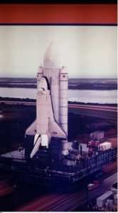 “无畏号”航母1941年大平洋战争爆发前夕开始建造,1943年建成服役,其滿载排水量为三万六千余吨(几乎只有“中途岛号”航母排水量的一半)属于中小型航母。曾参与对日海战和对日本本土的轰炸,二战后退役封存,朝鲜战争开始后,又开始改装增设斜角飞行甲板,于1954年重新服役,曾经参加越南战爭于1974年正式退役,上世纪八十年代改为航母及太空博物館。我们经过过桥和楼梯直接进到航母甲板下面的机库,机库里放满了各式飞机,机库内的构造、形态和放置的各类飞机展品,都与“中途岛号”航母相似,只是机库比“中途岛号”的要小许多,由于这些东西都是我在“中途岛号”上参观过的,因此没有在这一层久留,至于机库下面的生活层和动力层也因都参观过,所以也不打祘到下面两层去参观了。我找到楼梯口登上航母的甲板,甲板上也排放着各类不同用途的战机,它们的一个共同特点就是为便于从下面的机库升降和存放,这些飞机的机翼都是可以折叠的,舰桥上的指挥、操控系统也不打祘爬上去参观了,估计与中途岛号上的也差不了多少,我直接朝建在舰尾甲板上的航天博物館走去,去参观放在那里的、世界上难得一见的航天飞机。