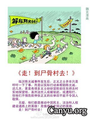 (维权网信息员张兵综合报道)适逢2011年10月10日辛亥百年,大陆网络上又形成了新一轮声势浩大的声援陈光诚浪潮。在新浪微博上有不计其数的网友呐喊着陈光诚的名字,痛斥着当局践踏陈光诚一家基本人权的无耻而野蛮的行径。在“墙外”的推特上亦有网友通过私信相互沟通联系相约赴村。很多著名学者、作家、大学教授、媒体策划人、人大代表独立候选人、商界精英、网络名人、演艺界明星等社会名流、精英纷纷不断发出呐喊和舆论支援,其中有不少人表示将身体力行前往东师古村探访陈光诚。由于海量的转发,陈光诚的名字实际上已经突破了大陆的网络封锁,“自由陈光诚运动”的公民行动正在形成。