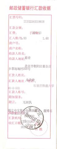 作者借款给艾未未的汇款收据。
