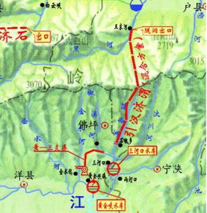 (一)山川水势 : 陕南地形,两山夹一谷。北有秦岭耸立,南有巴山蜿蜒,中有汉江盘旋。秦巴山地,山大沟深,地广人稀,河川道路,顺河而下,自然形成南北分水岭。秦岭以南为 长江流域,秦岭以北为黄河流域,河流多为西北东南向或东北西南向流淌,金水和河南偏东流向,黑河是北东向流淌,河床下切较深,便于沟通。