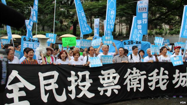 另外,占中发起人之一的戴耀廷也表示,如果政府漠视民意,相信社会将有更激烈的争取真普选的行动。不过,戴耀廷强调,应让政府在下星期日投票结束后,有足够时候回应,因此,七一游行当天不会发动占中,占中运动也会先用尽所有合理途径表达诉求,若最终仍得不到政府回应,才会以占中这种公民抗命方式争取真普选。他特别呼吁各团体要忍耐,并先做好准备。