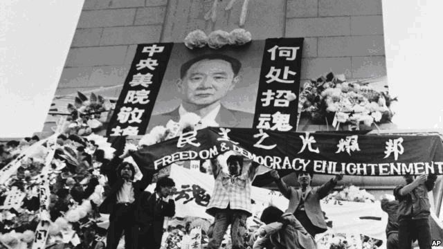 1989年4月15日后北京高校学生在天安门悼念胡耀邦