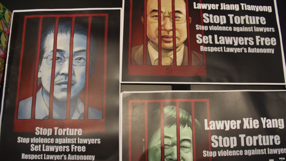 香港中国维权律师关注组制作的中国律师标语牌(海彦 香港)