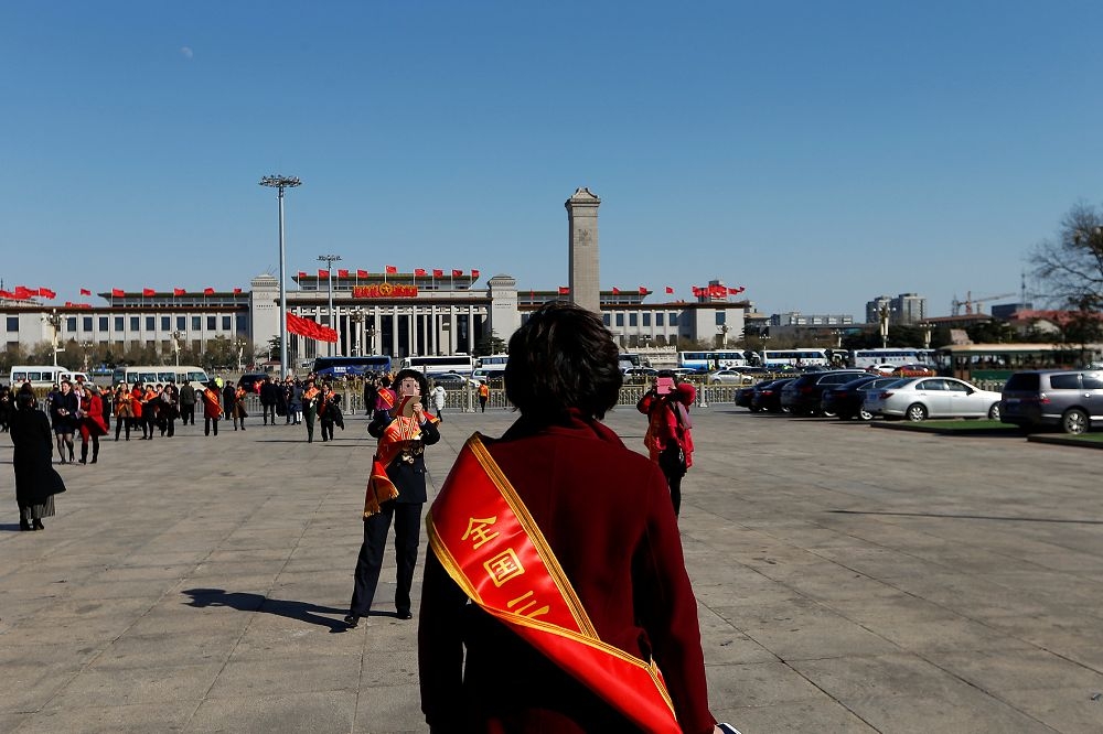 两会不过是中共与苟延残喘下的社会各党派共同设立的「虚拟障眼法」,主角是中共,次角是非共人士,以此彰显一个兼听则明虚假共荣的伪民主现象。(中国人大议场前广场/汤森路透)