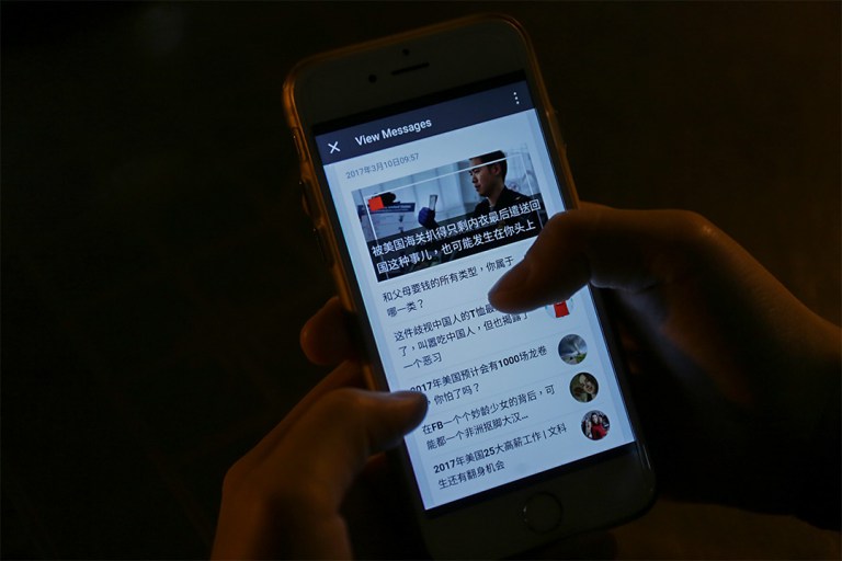“北美留学生日报”主要立足微信公号,每天会推送五到六篇文章,除留学生相关资讯外,还有大量美国主流新闻的内容。摄:陈朗熹/端传媒