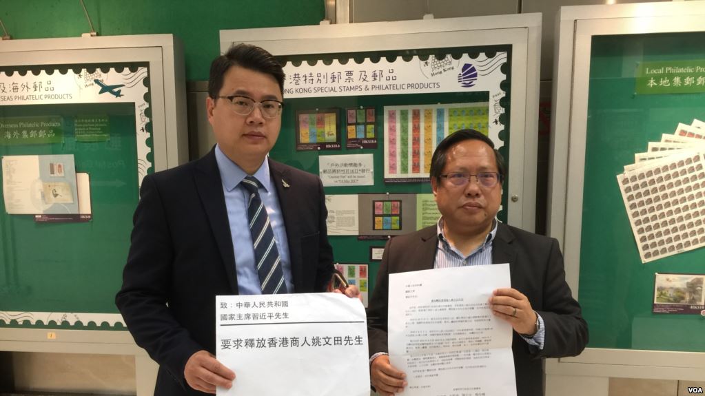 香港民主党两位现任和前任议员,星期四中午在邮政总局向国家主席习近平邮寄由十多位民主派议员联署的公开信,促请内地秉持人道主义精神,释放在东莞坐监的香港书商姚文田保外就医,在内地或回香港诊治。