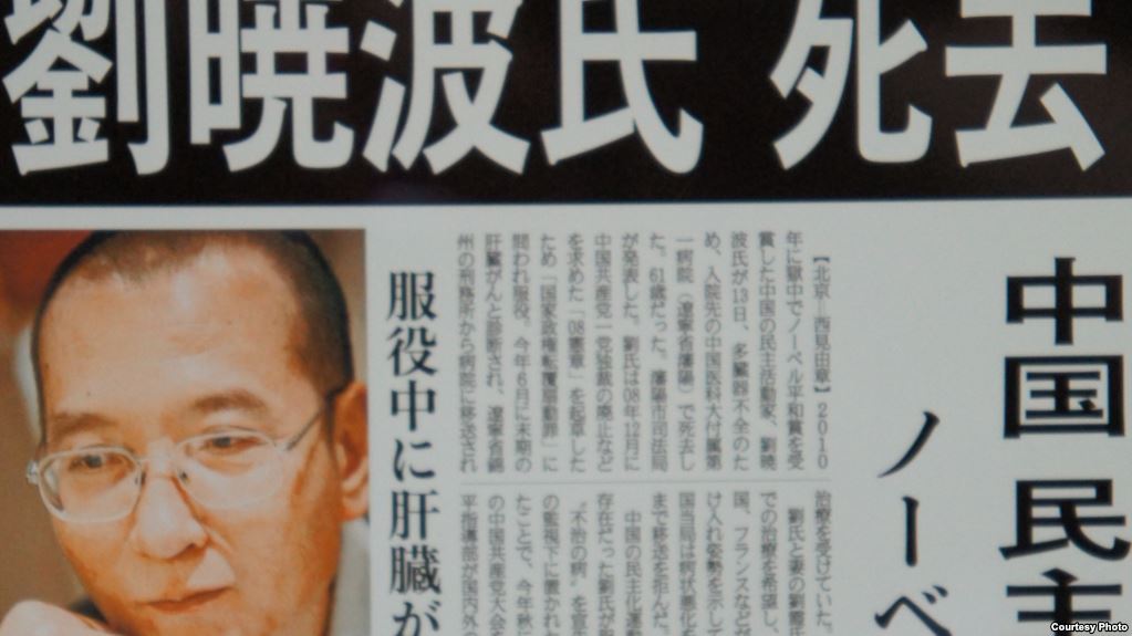 ▲美国之音(VOA)7月13日报道:诺贝尔和平奖得主刘晓波去世