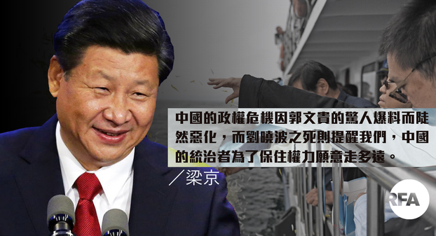 中国的政权危机因郭文贵的惊人爆料而陡然恶化,而刘晓波之死则提醒我们,中国的统治者爲了保住权力愿意走多远。不同于历史上中国政权的危机,这一次中国的政权危机把无数人的命运都绑架了。这是一个史无前例的挑战,仅靠义愤和道德空论,显然不足以应对这个危机。郭文贵在最新一次爆料中,特别强调了当今科技的重要性。中国的腐败能发展到今天绑架世界的程度,事实上也与科技的发达有很大关系。那麽,在新的技术中,是否也包含著中国以不同于历史上大规模杀戮的方式解决政权危机的可能?这就要看有没有智慧了,不仅要看习近平的智慧,更不能仅指望郭文贵的智慧,而要看更多人的智慧,包括一切华人以及国际社会的智慧。