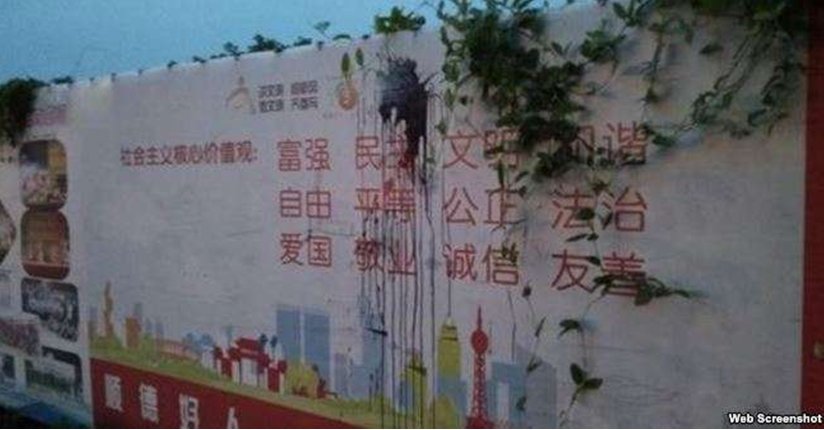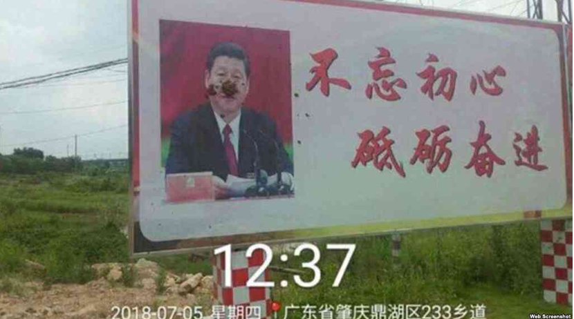 中国各地一些大型宣传板被涂鸦(推特图片)