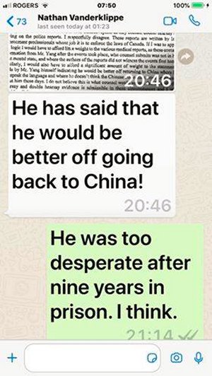 我堅持認為:把一個中國監獄造成的精神病人又送回中國監獄,這是違背基本人道的。他需要的是精神病鑒定,而不是立即遣返——我從未聽說加拿大政府對他做過精神病鑒定,特別是監獄病的鑒定。從他7年前入獄的浮腫而恍惚的狀態,一眼就能看出他的病。