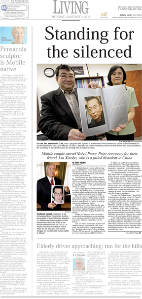 作为2010年诺贝尔和平奖获得者刘晓波的朋友,南阿拉巴马大学生物医学图书馆的杰莉和她的丈夫蔡楚应挪威诺贝尔委员会的邀请参加了2010年12月10日在挪威奥斯陆举行的诺贝尔和平奖颁奖典礼。