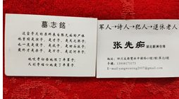 (左图:半盲的张先痴在艰难地写作《格拉古实录》)(右图为张先痴生前名片)名片正面写着:张先痴:湖北新洲仓埠,“军人→诗人→犯人→退休老人,四川成都双林中横路49号。背面写着:“这盒骨灰的原料来自张先痴的尸体。他曾经是孩子、是才子、是天之骄子;也一度是傻子、是疯子、是回头浪子;最终才是赤子、是刀子、是过河卒子;他咬牙切齿地恨了半辈子;又刻骨铭心地爱了半辈子。”