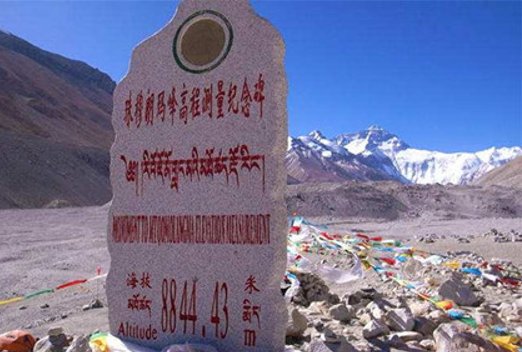 图2:2005年珠穆朗玛峰高程测量纪念碑,8844.43米。图片来源:网路截屏